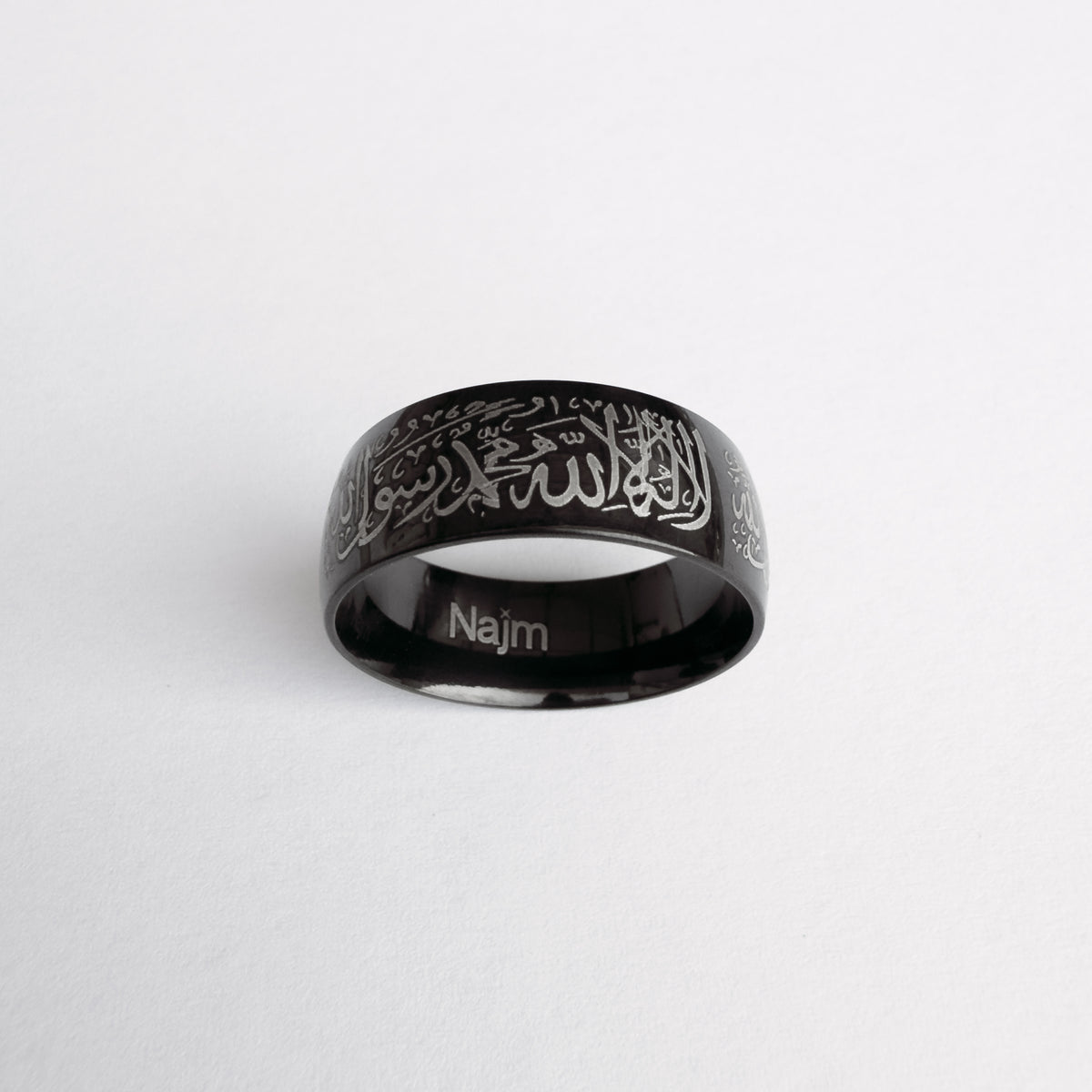 A powerful expression of faith, the Shahada Ring is crafted for those who carry their beliefs with confidence. Featuring the sacred Shahada engraved in elegant Arabic script, this piece is both a spiritual reminder and a bold style statement.